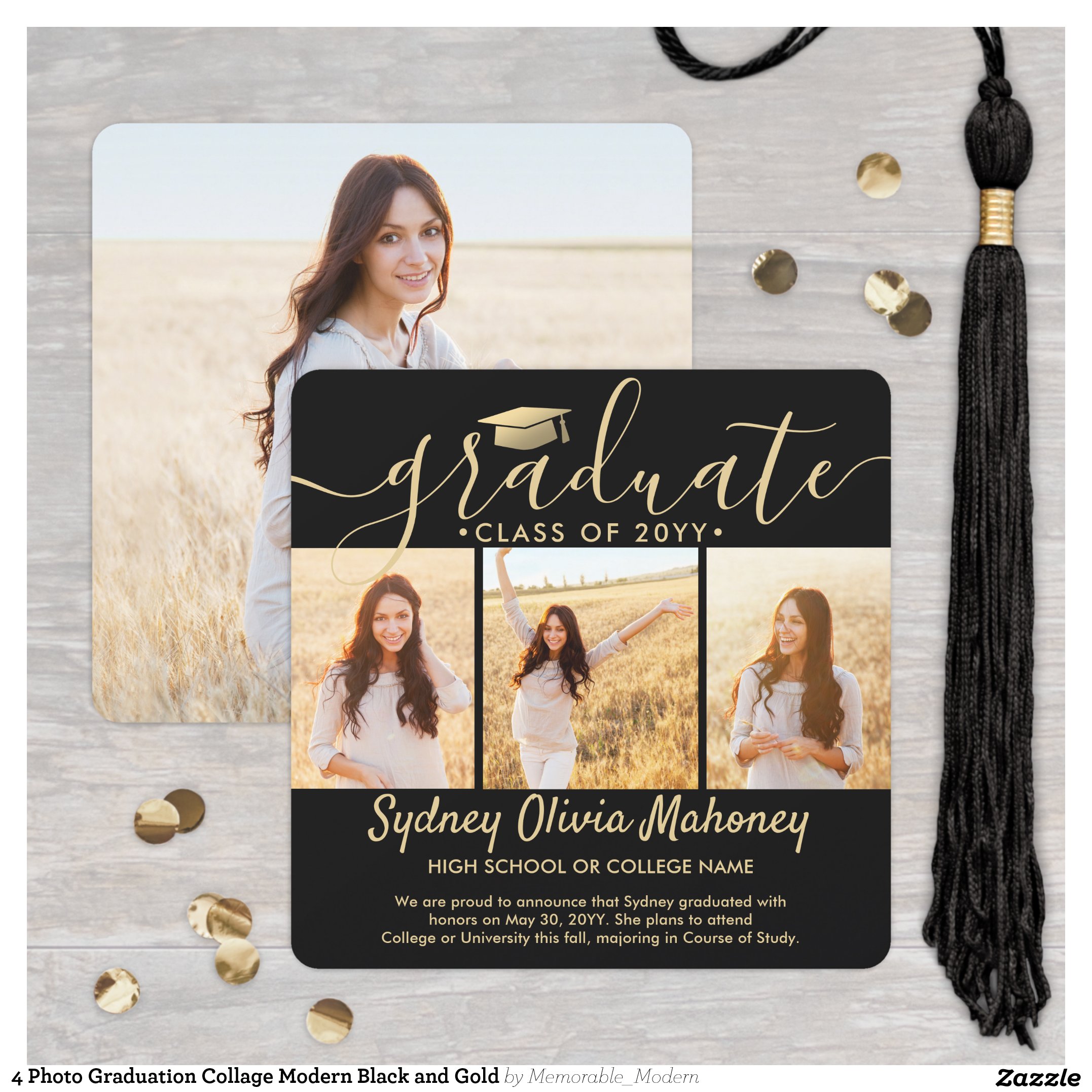 4 Photo Graduation Collage Simple Modern Script Announcement