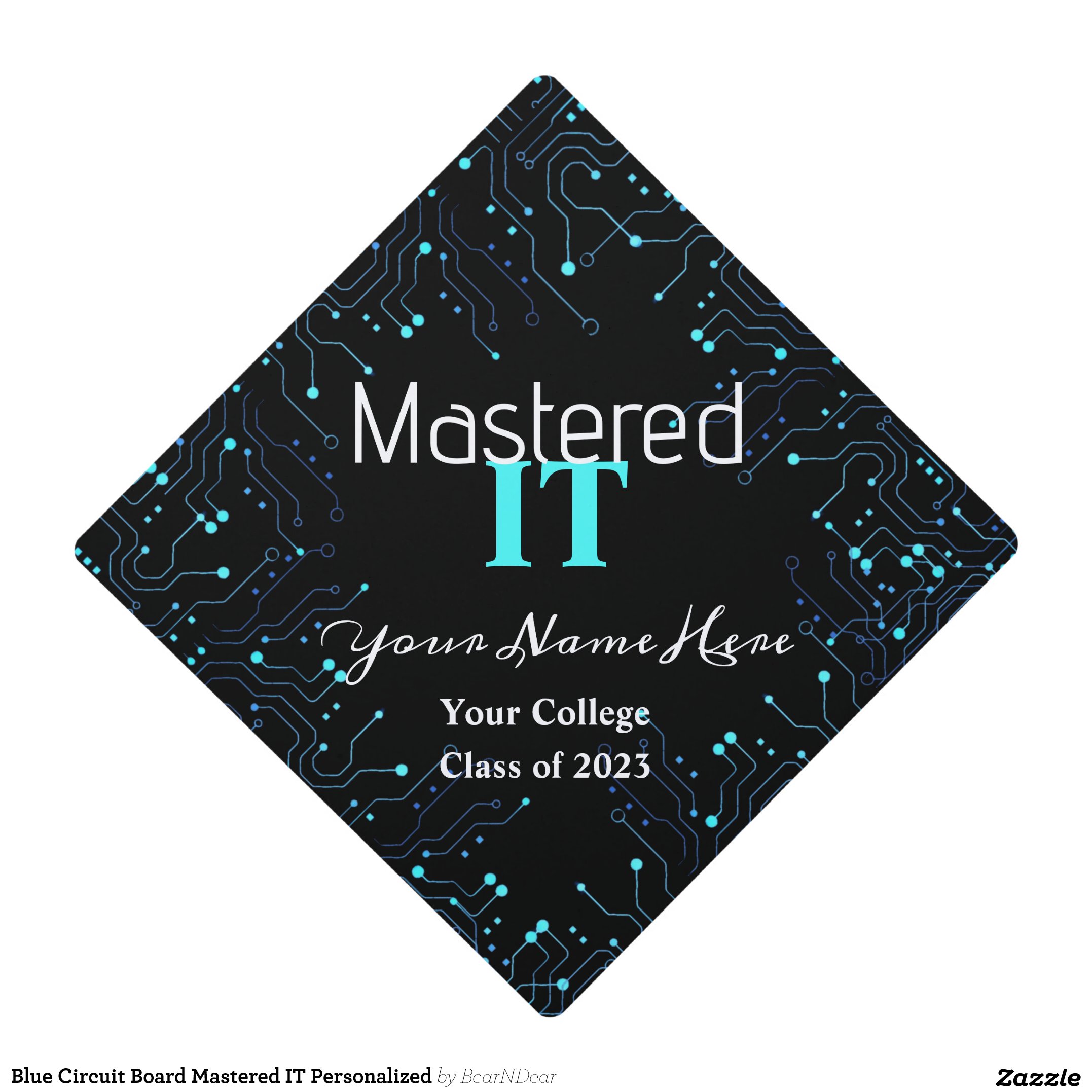 Blue Circuit Board Mastered IT Personalized Graduation Cap Topper
