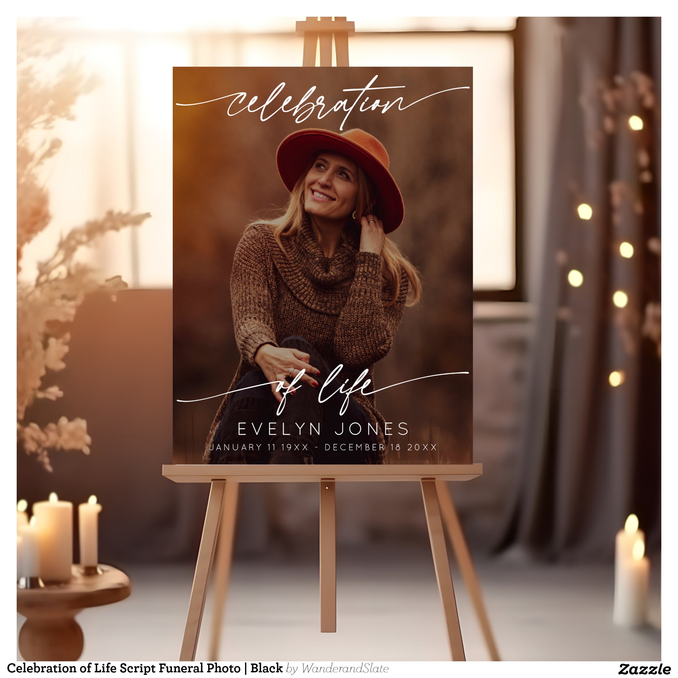 Be the first to review “Celebration of Life Script Funeral Photo Black Foam Board”