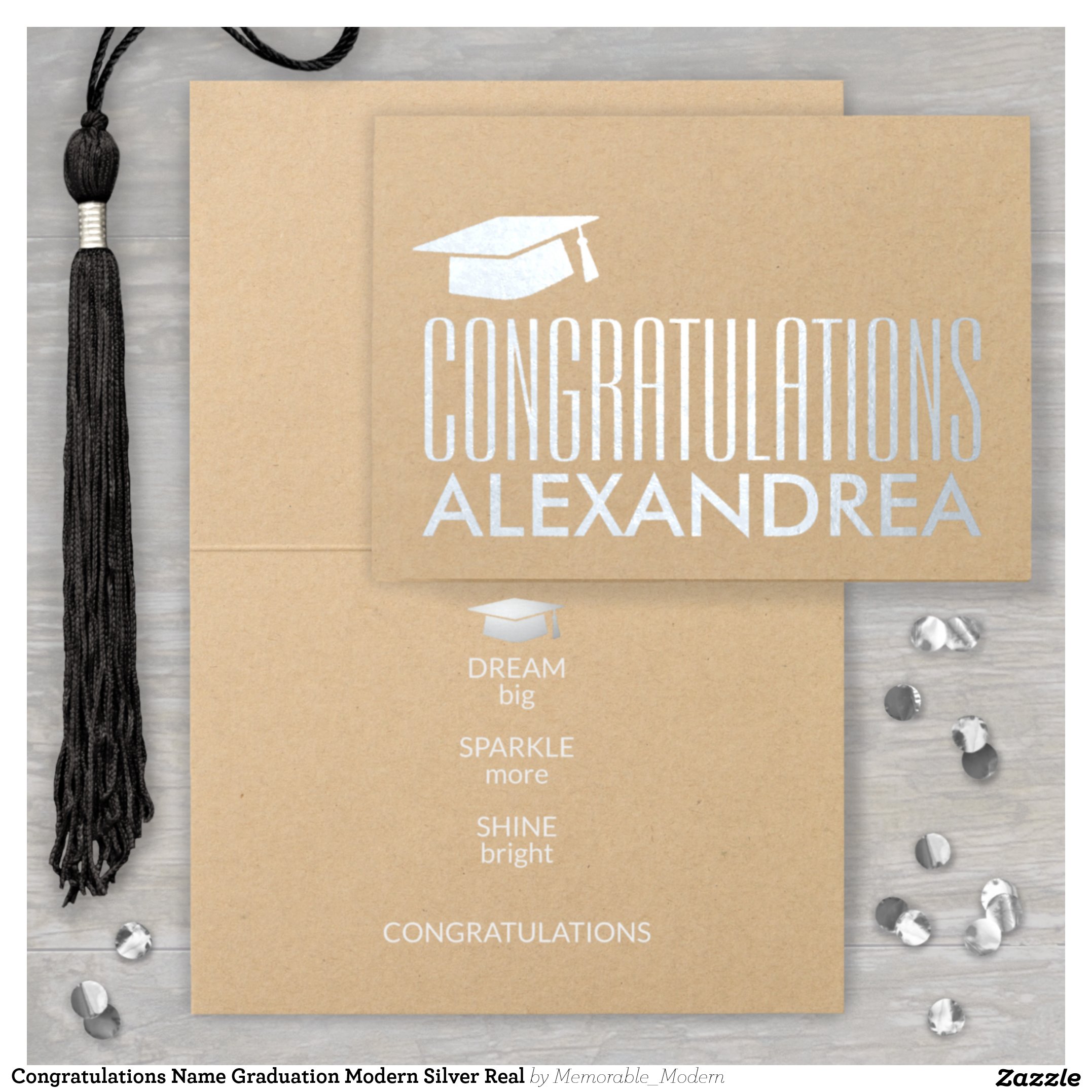Congratulations Name Graduation Modern Silver Real Foil Card