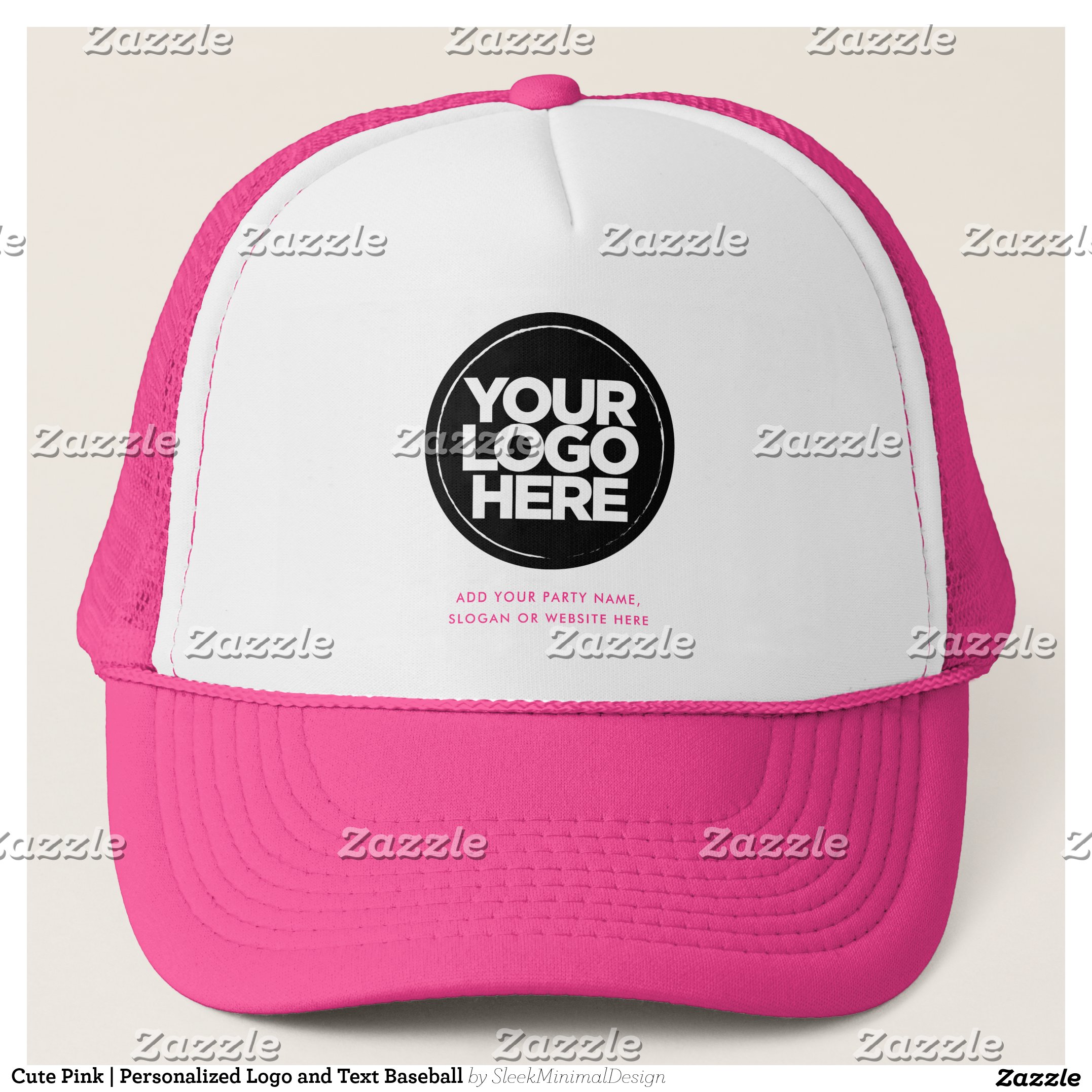 Cute Pink Personalized Logo and Text Baseball Trucker Hat