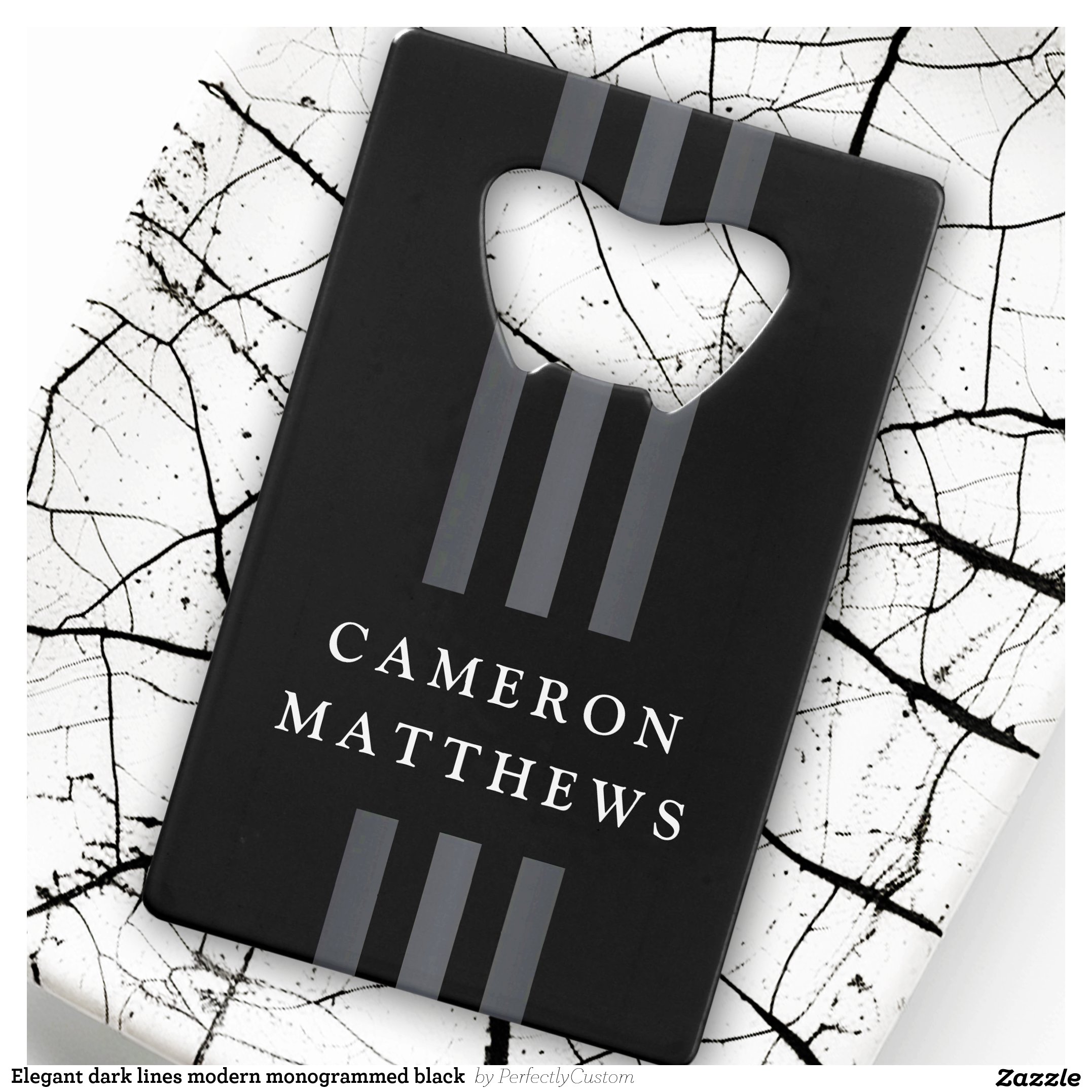 Be the first to review “Elegant dark lines modern monogrammed black credit card bottle opener”