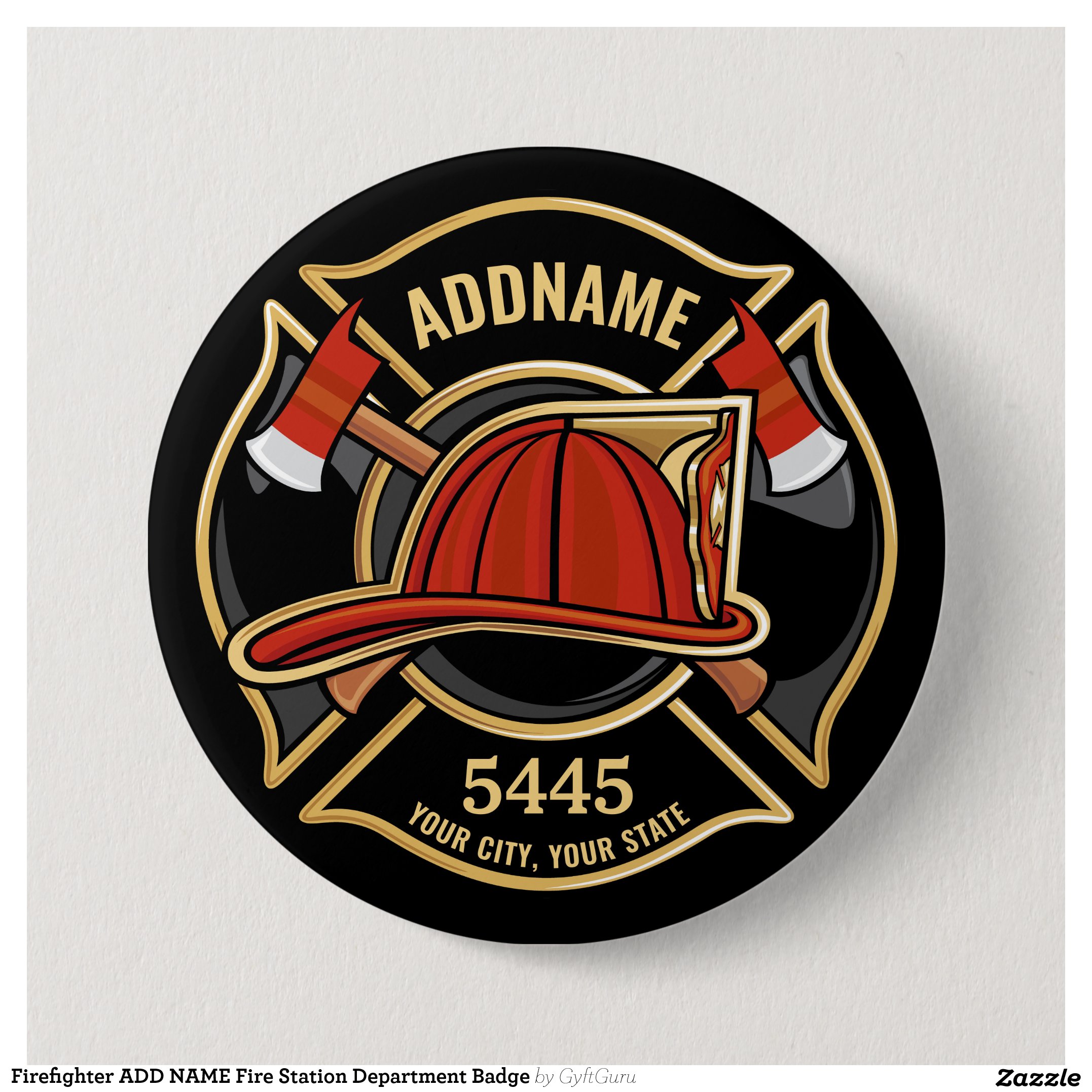 Firefighter ADD NAME Fire Station Department Badge Button