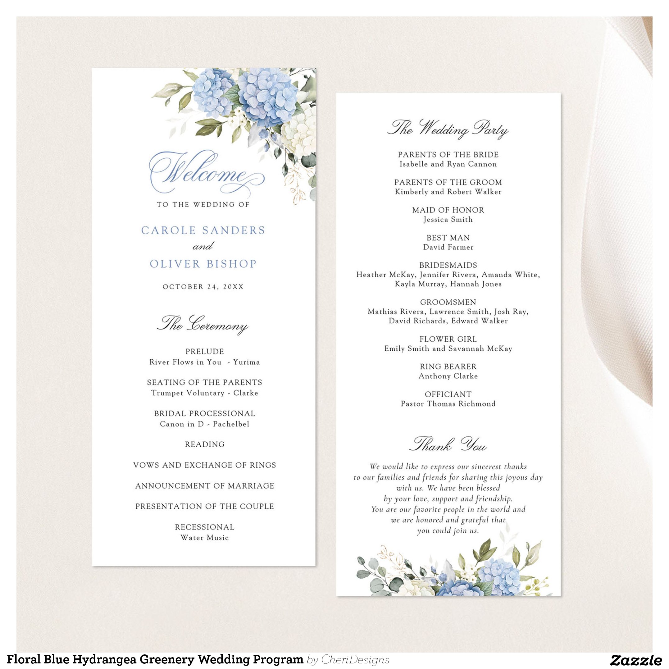 Floral Blue Hydrangea Greenery Wedding Program