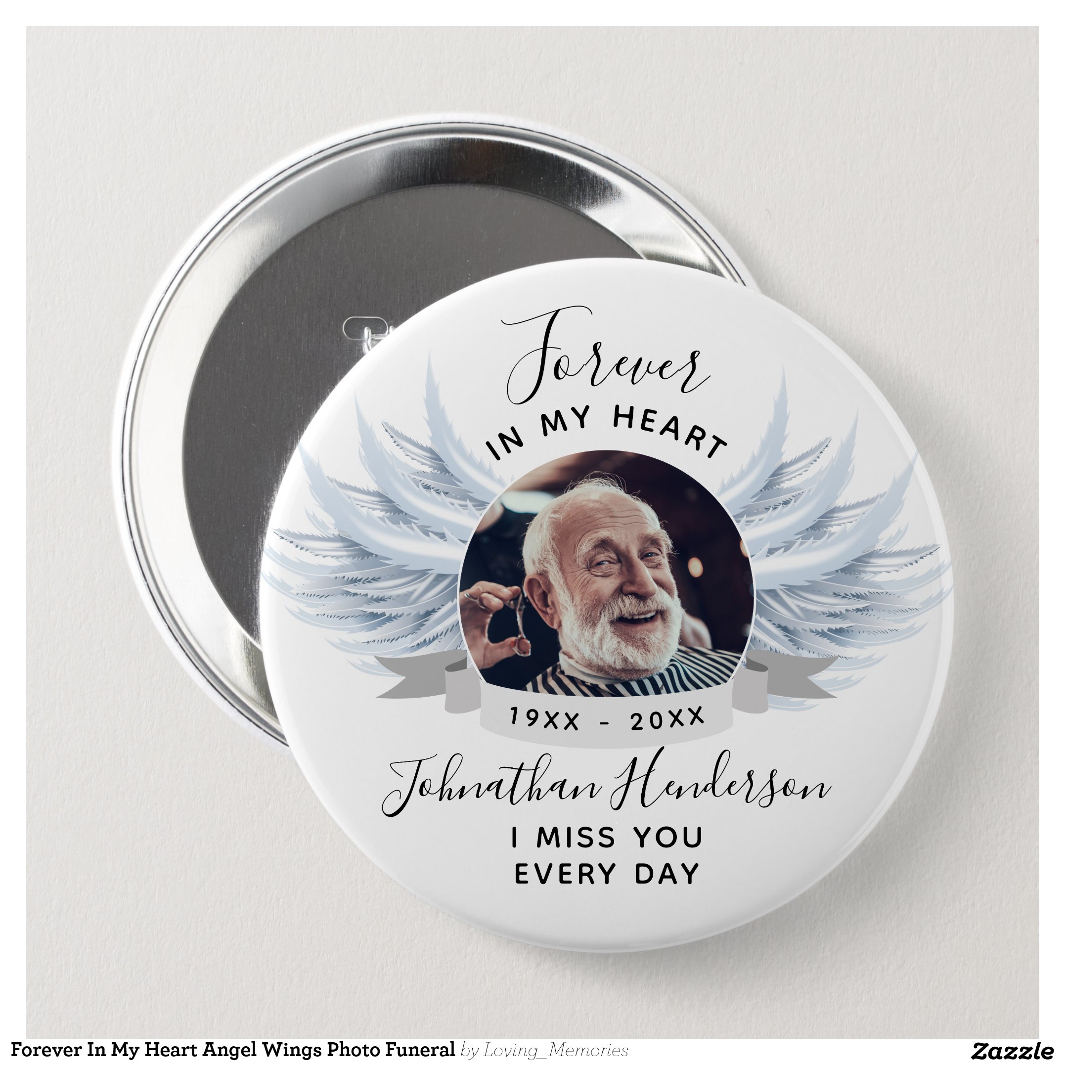 Be the first to review “Forever In My Heart Angel Wings Photo Funeral Button”