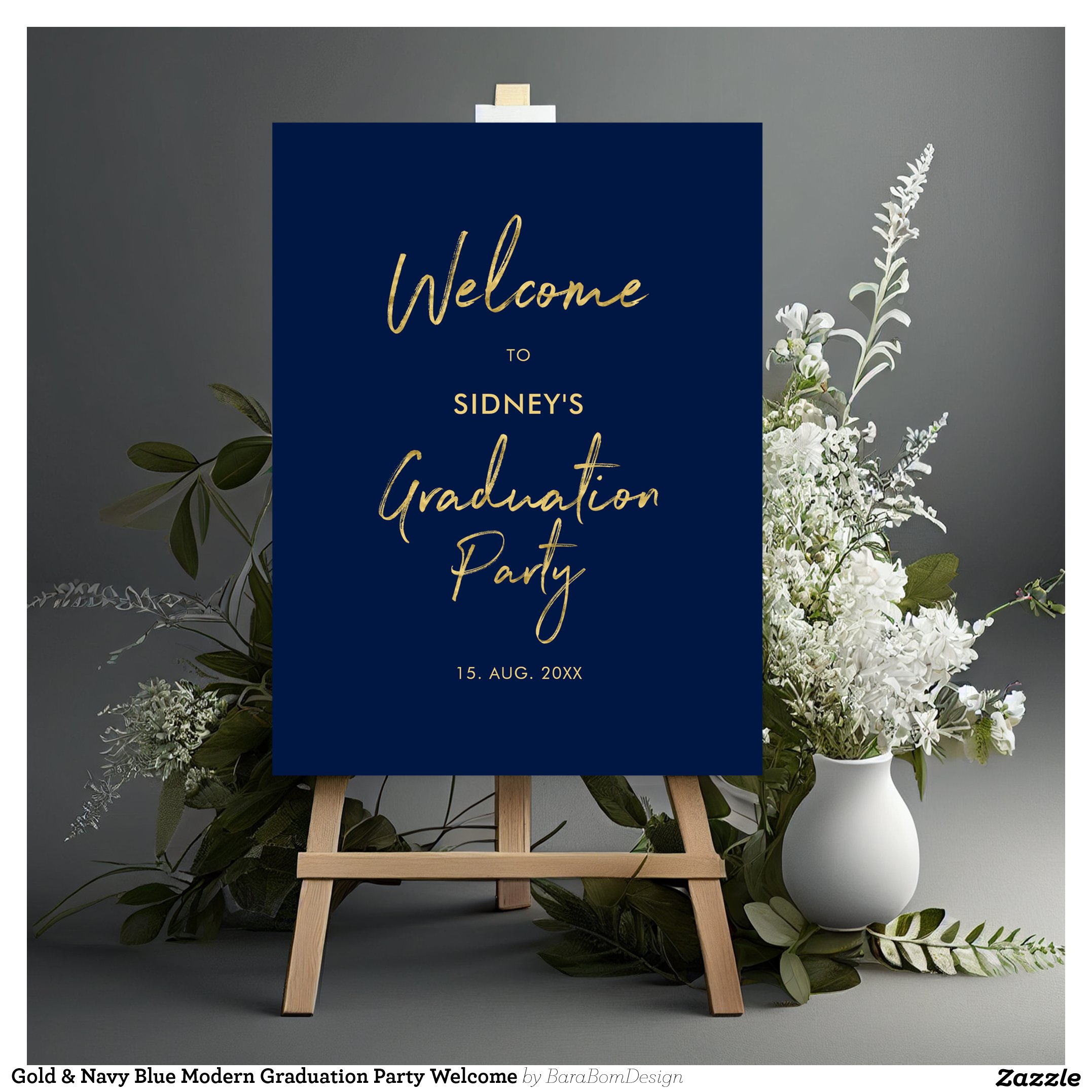 Gold & Navy Blue Modern Graduation Party Welcome Foam Board