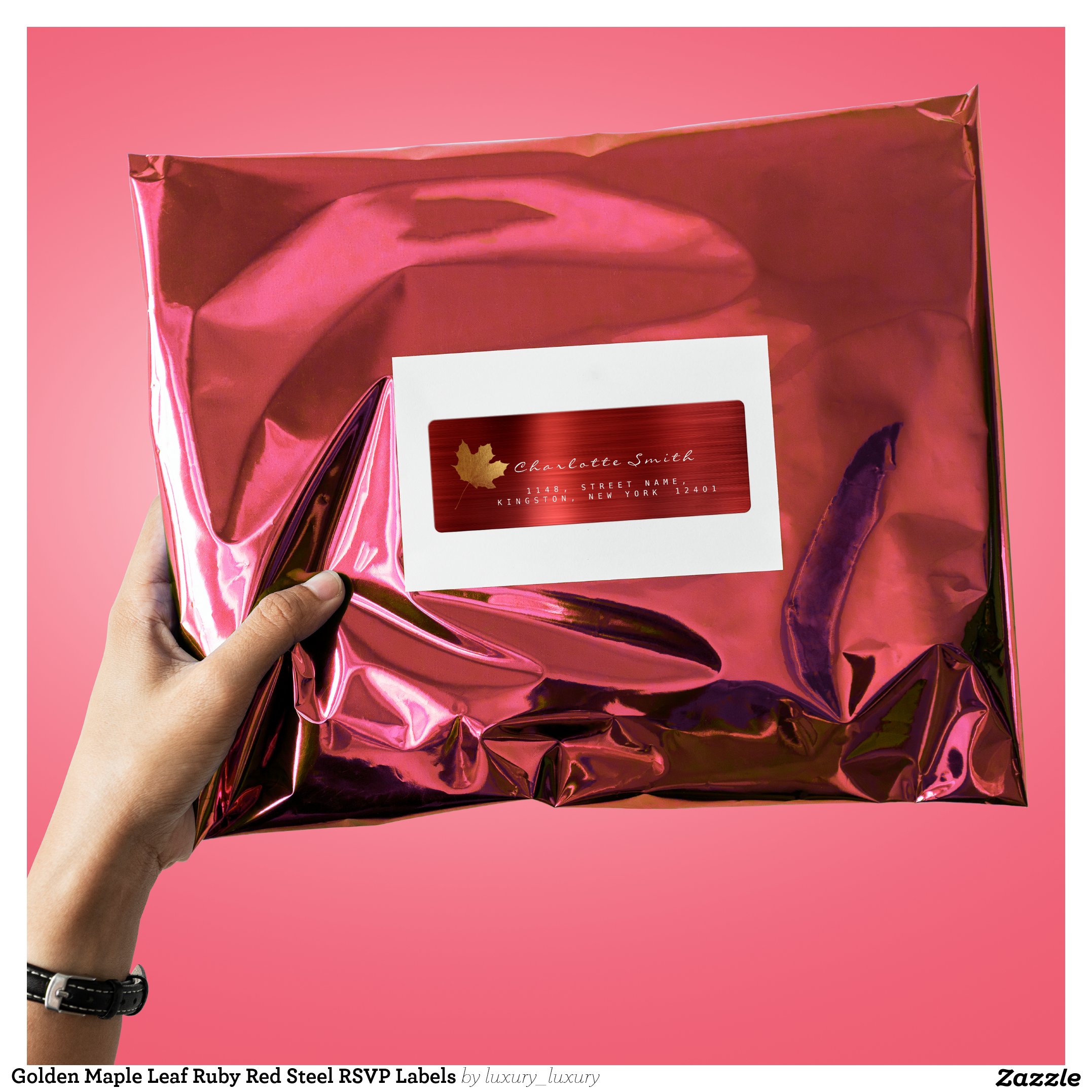Golden Maple Leaf Ruby Red Steel RSVP Labels