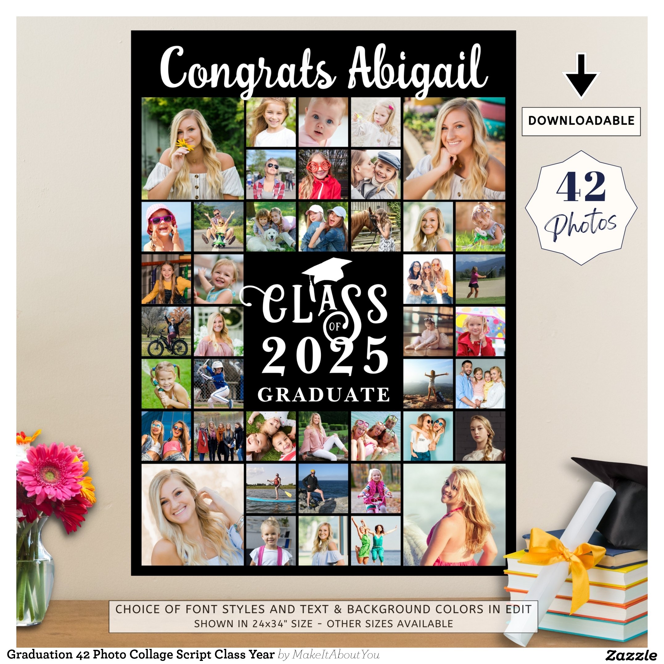 Graduation 42 Photo Collage Script Class Year Poster