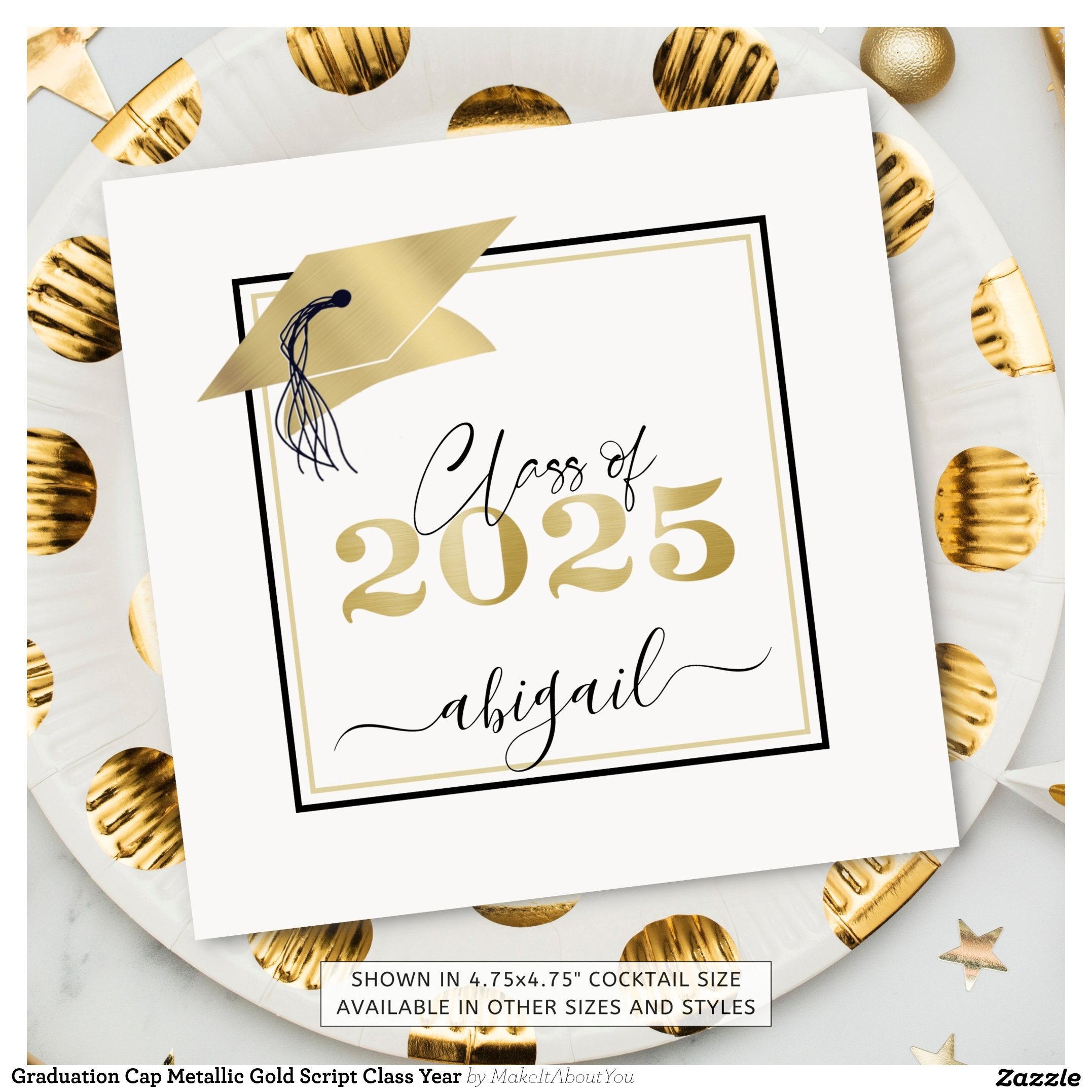 Graduation Cap Faux Metallic Gold 2025 Script Napkins