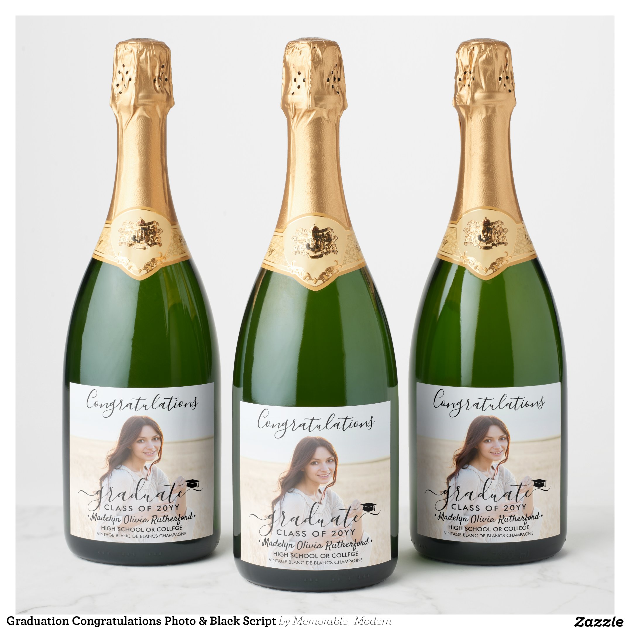 Graduation Congratulations Photo & Black Script Sparkling Wine Label