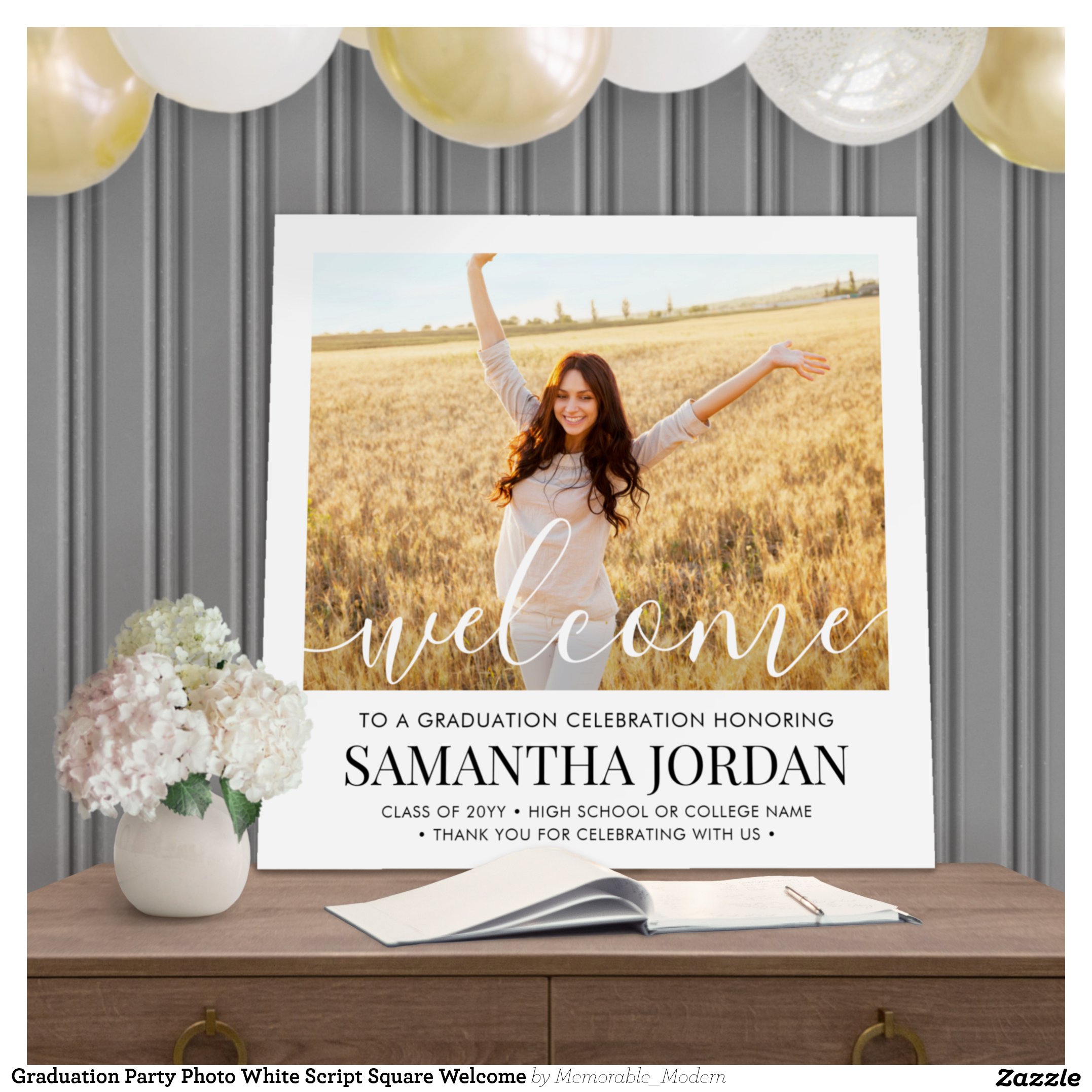 Graduation Party Photo White Script Square Welcome Foam Board