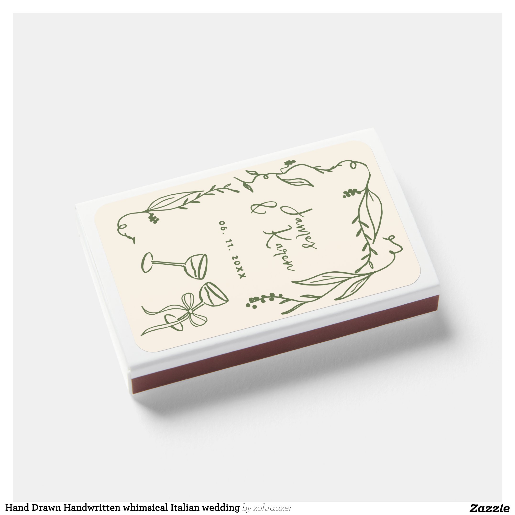 Hand Drawn Handwritten whimsical Italian wedding Matchboxes
