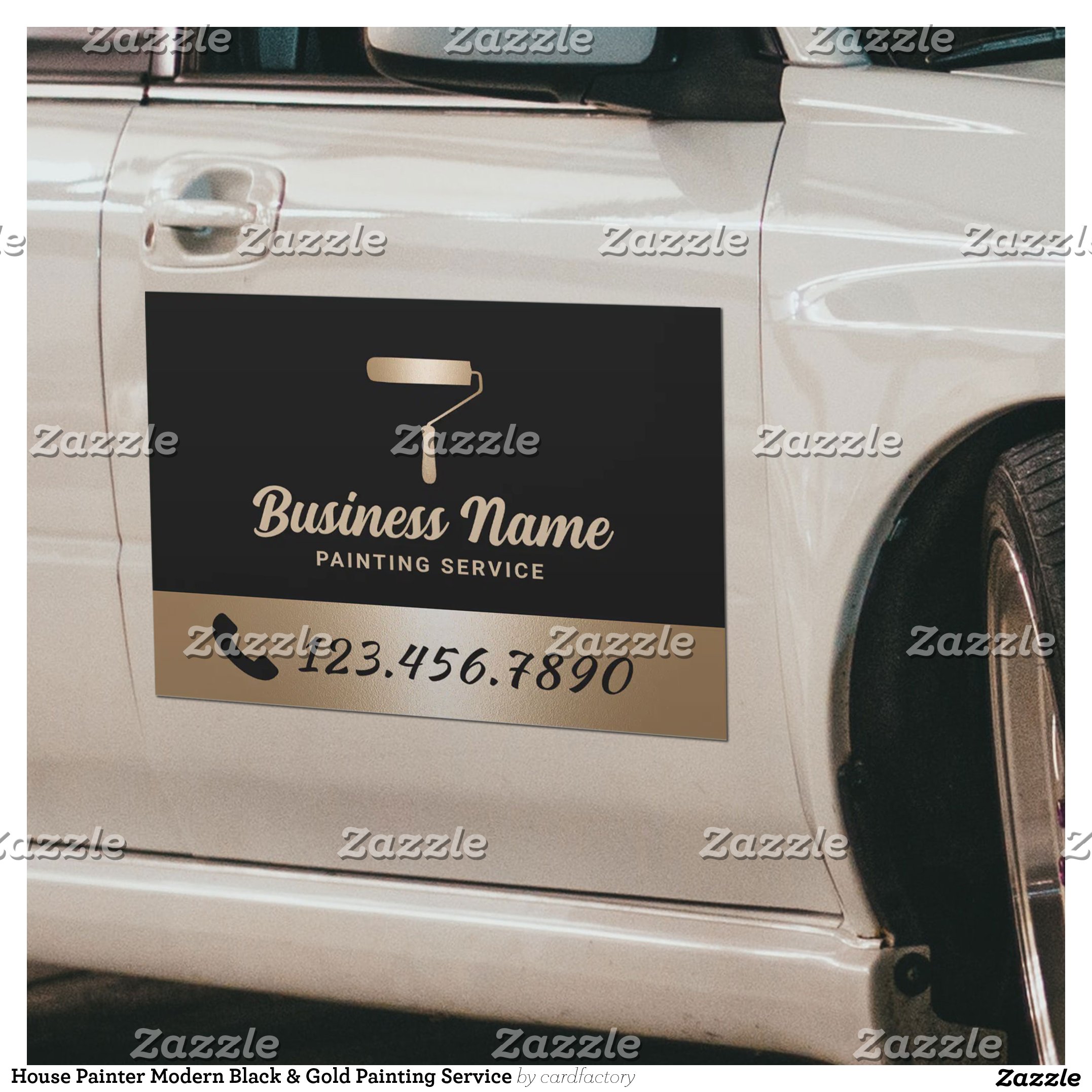 House Painter Modern Black & Gold Painting Service Car Magnet