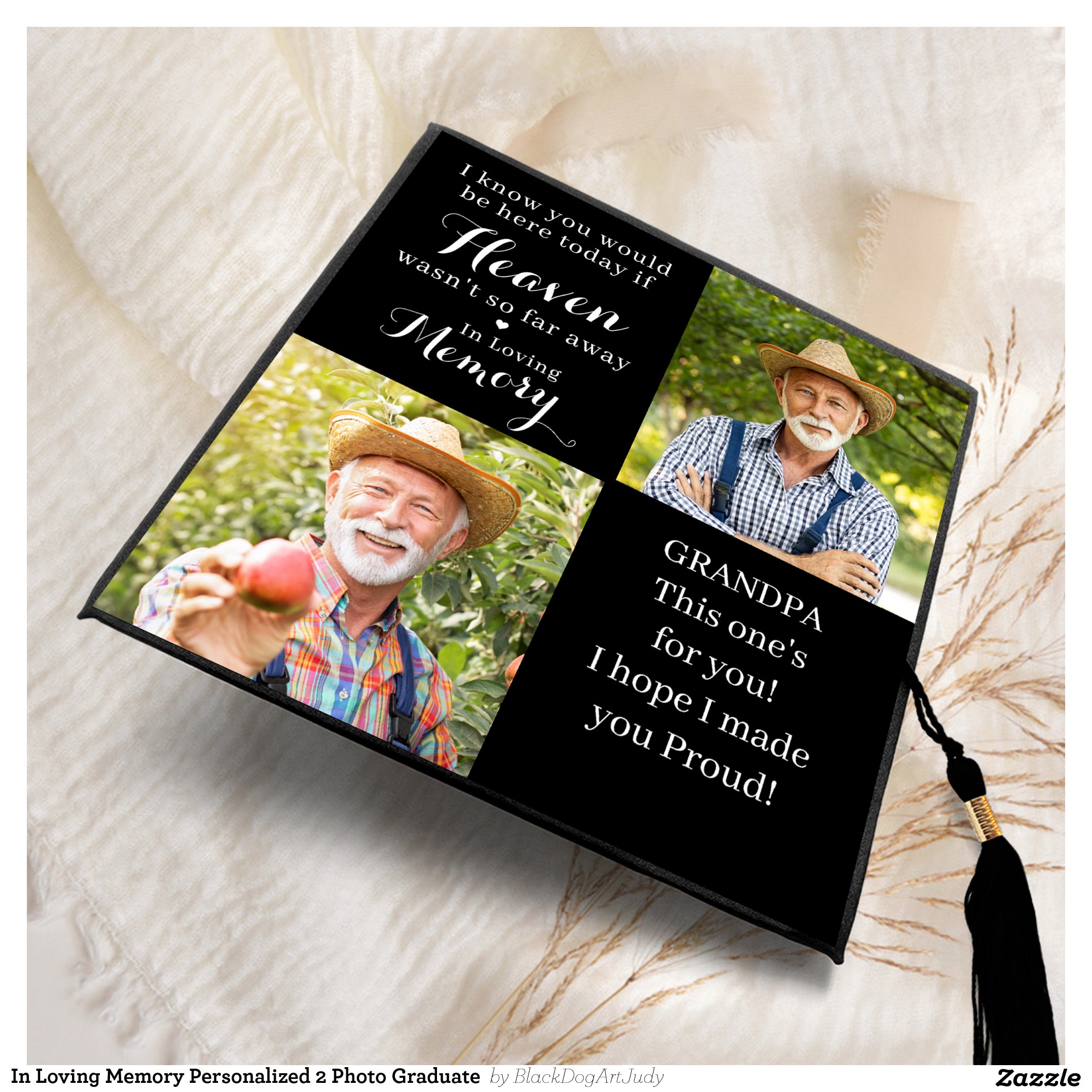 In Loving Memory Personalized 2 Photo Graduate Graduation Cap Topper