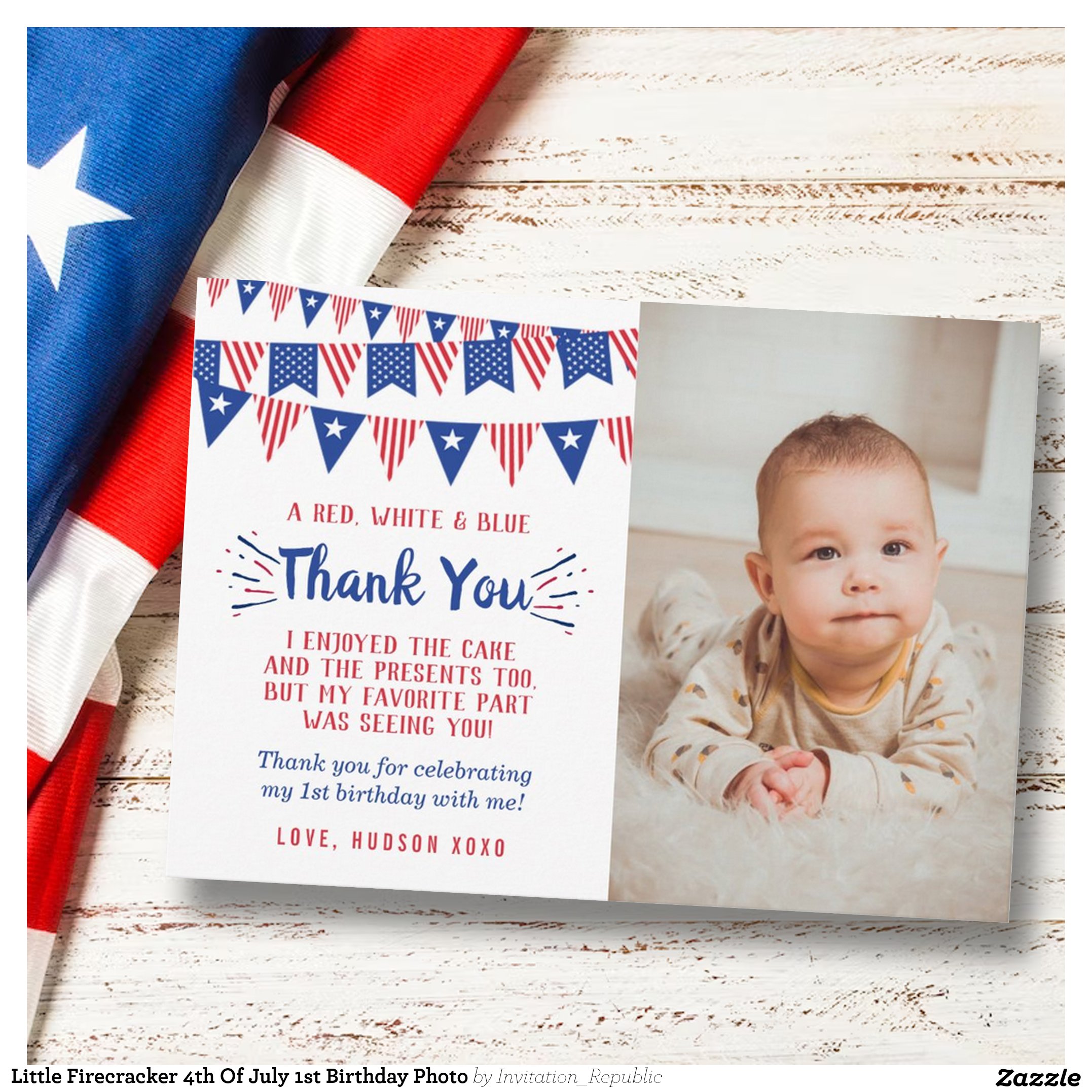 Little Firecracker 4th Of July 1st Birthday Photo Thank You Card