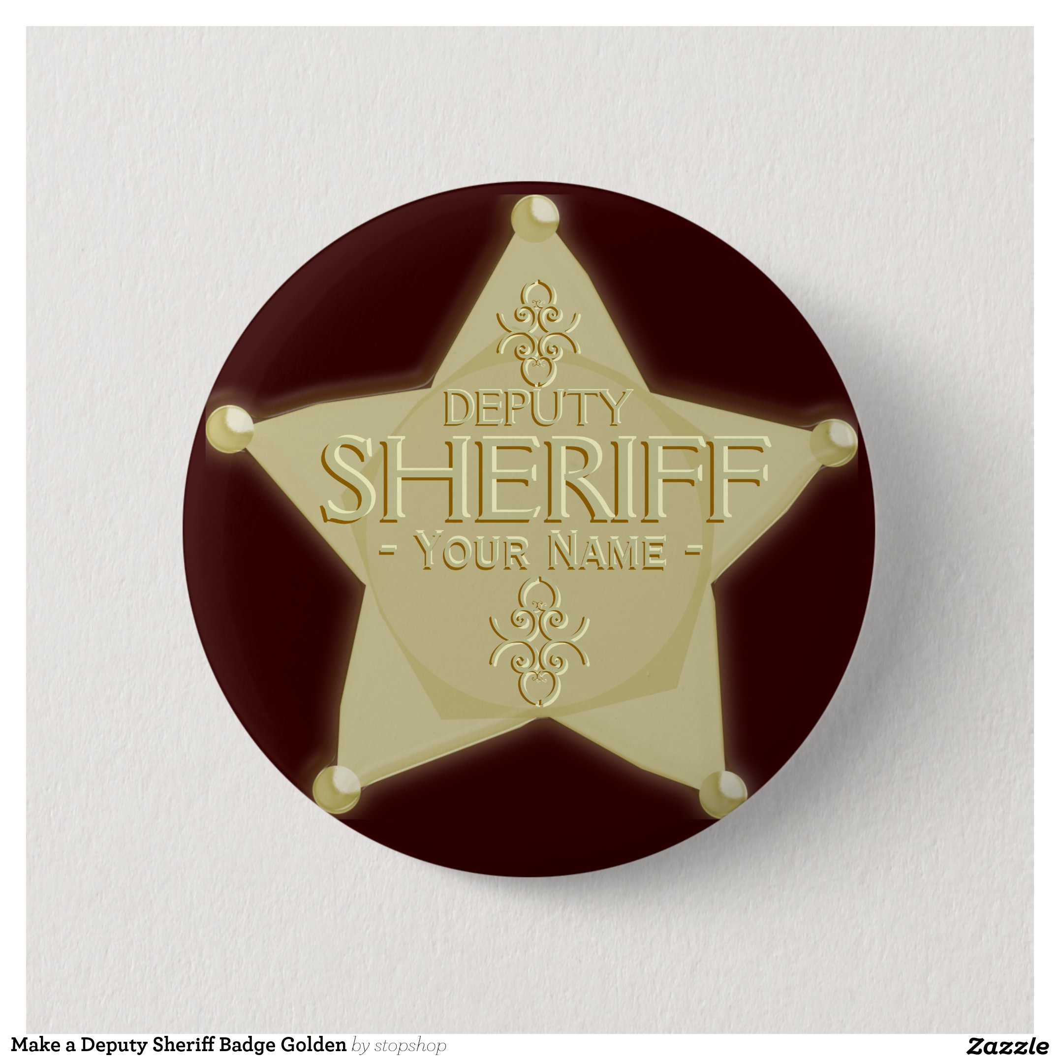 Make a Deputy Sheriff Badge Golden Pinback Button