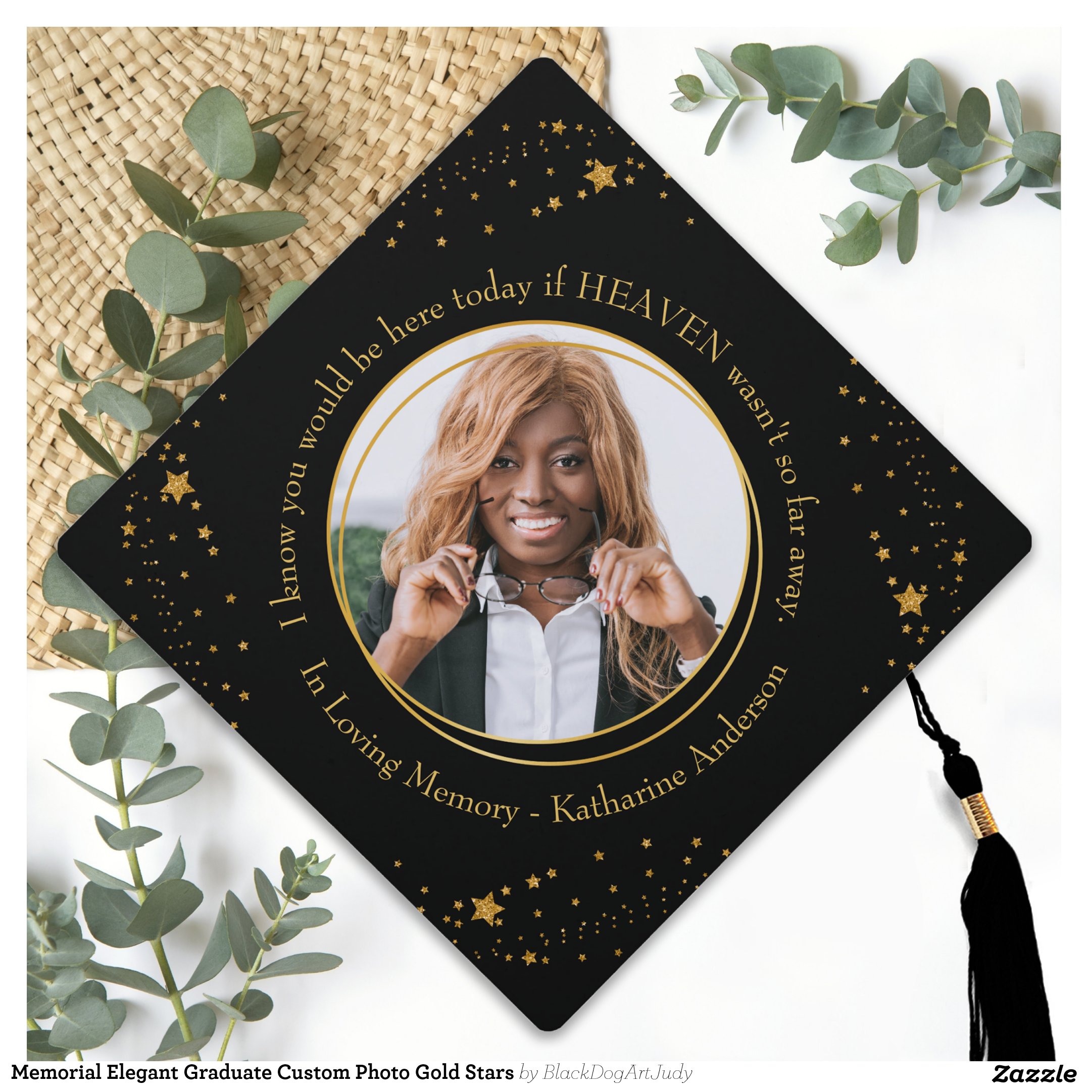 4 Photo Graduation Collage Black and Gold Script Announcement