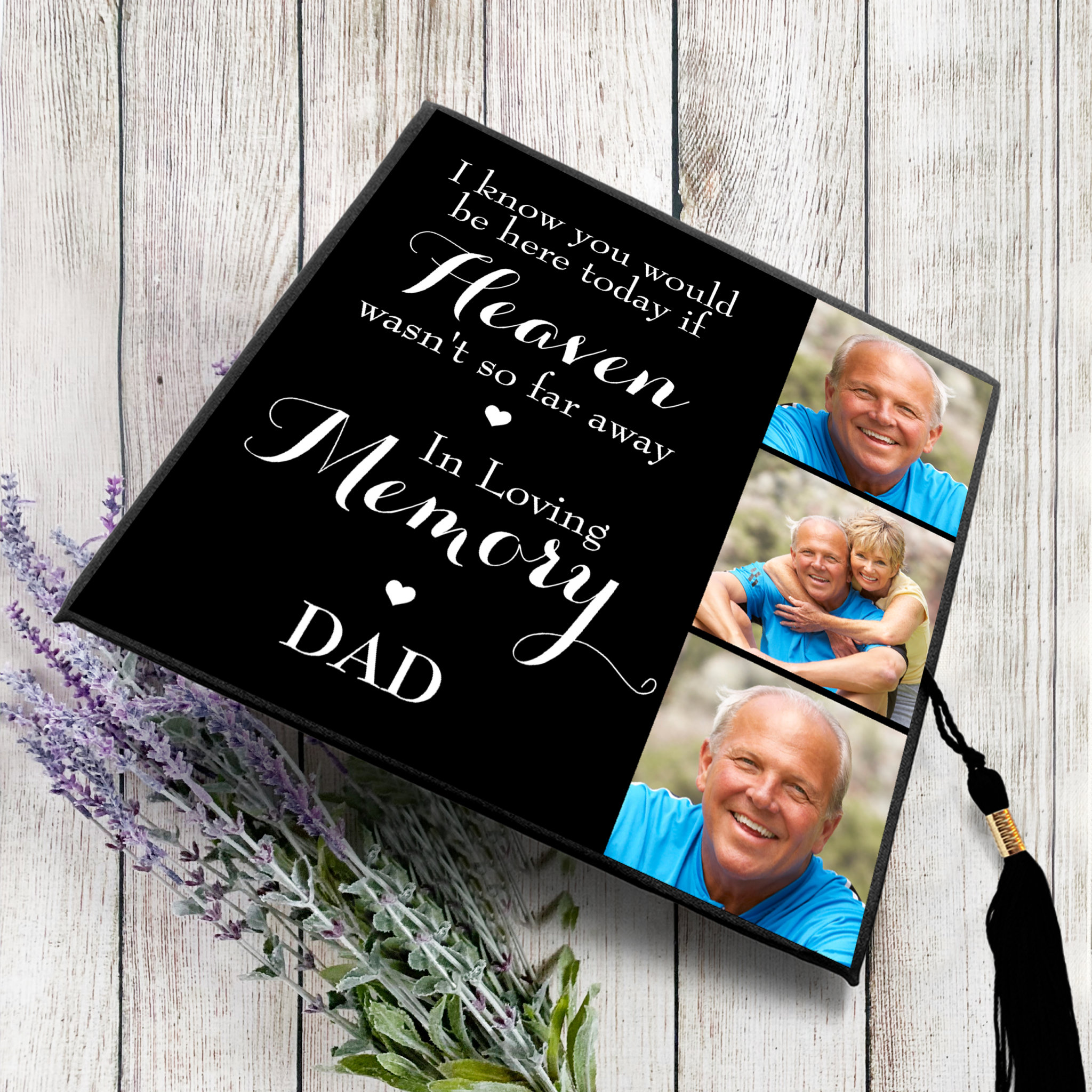 Memorial Elegant Remembrance Personalized 3 Photo Graduation Cap Topper
