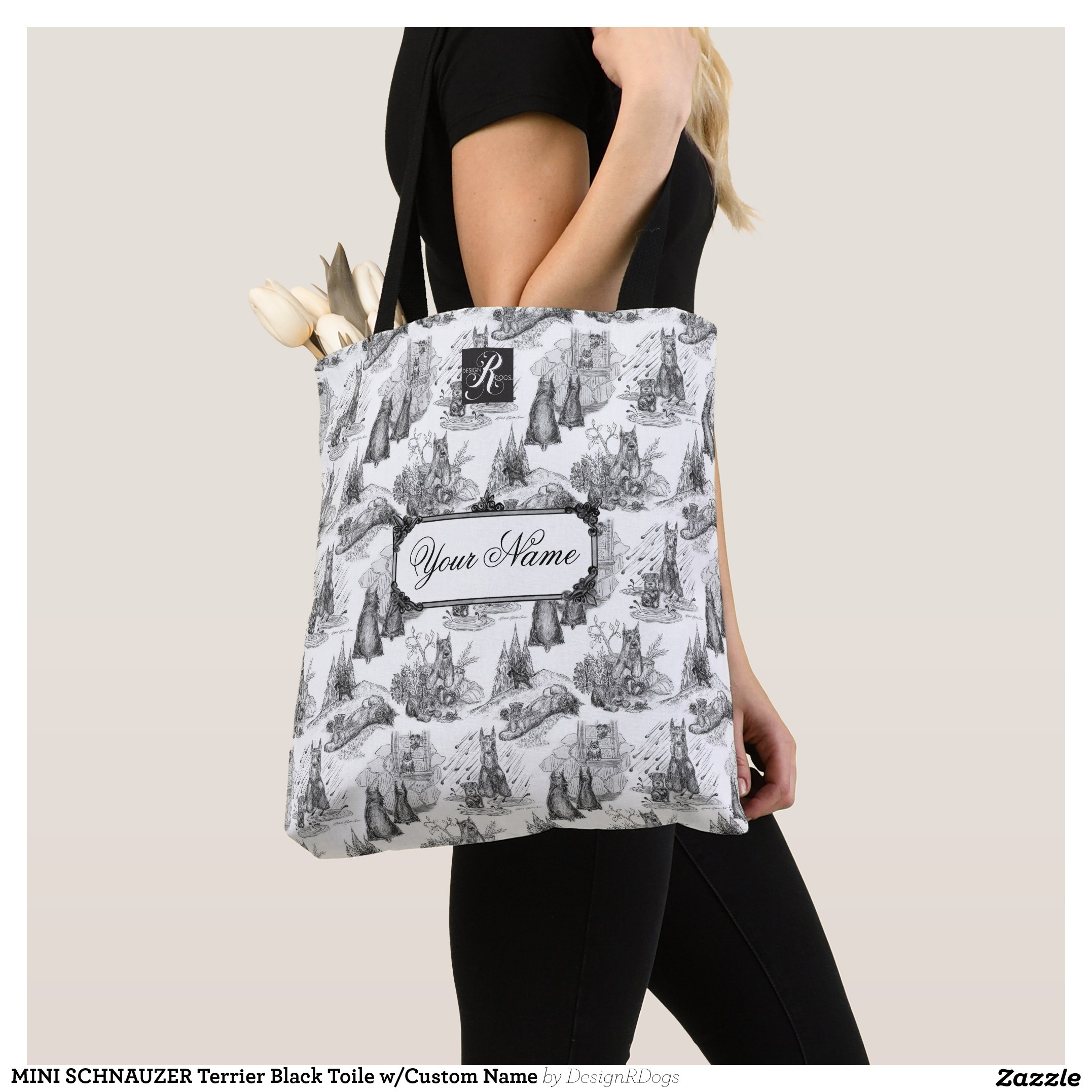 Be the first to review “MINI SCHNAUZER Terrier Black Toile w/Custom Name Tote Bag”