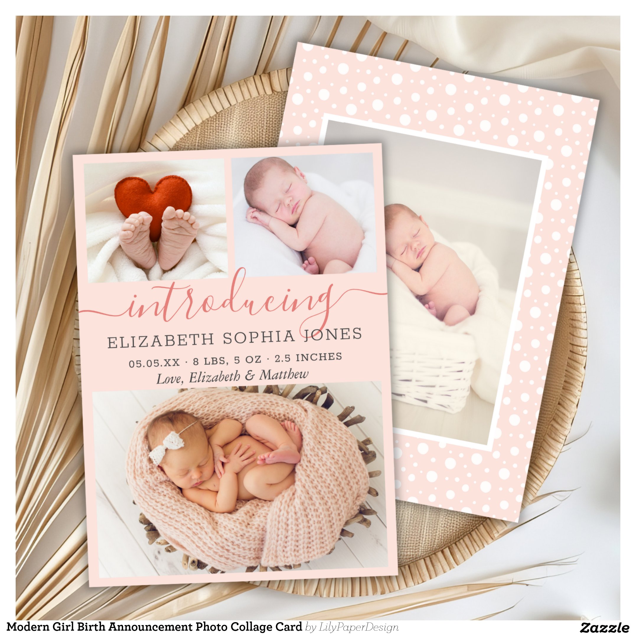 4 Photo Graduation Collage Blush Pink Gold Script Announcement