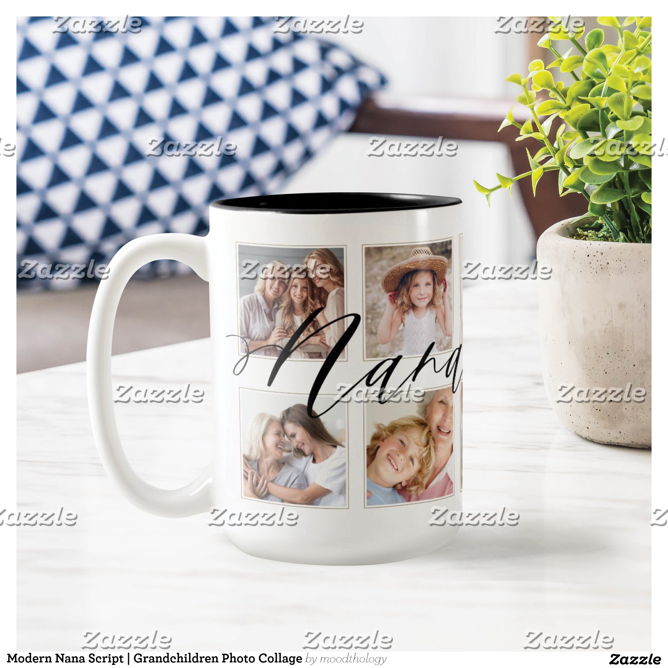 Be the first to review “Modern Nana Script Grandchildren Photo Collage Coffee Mug”