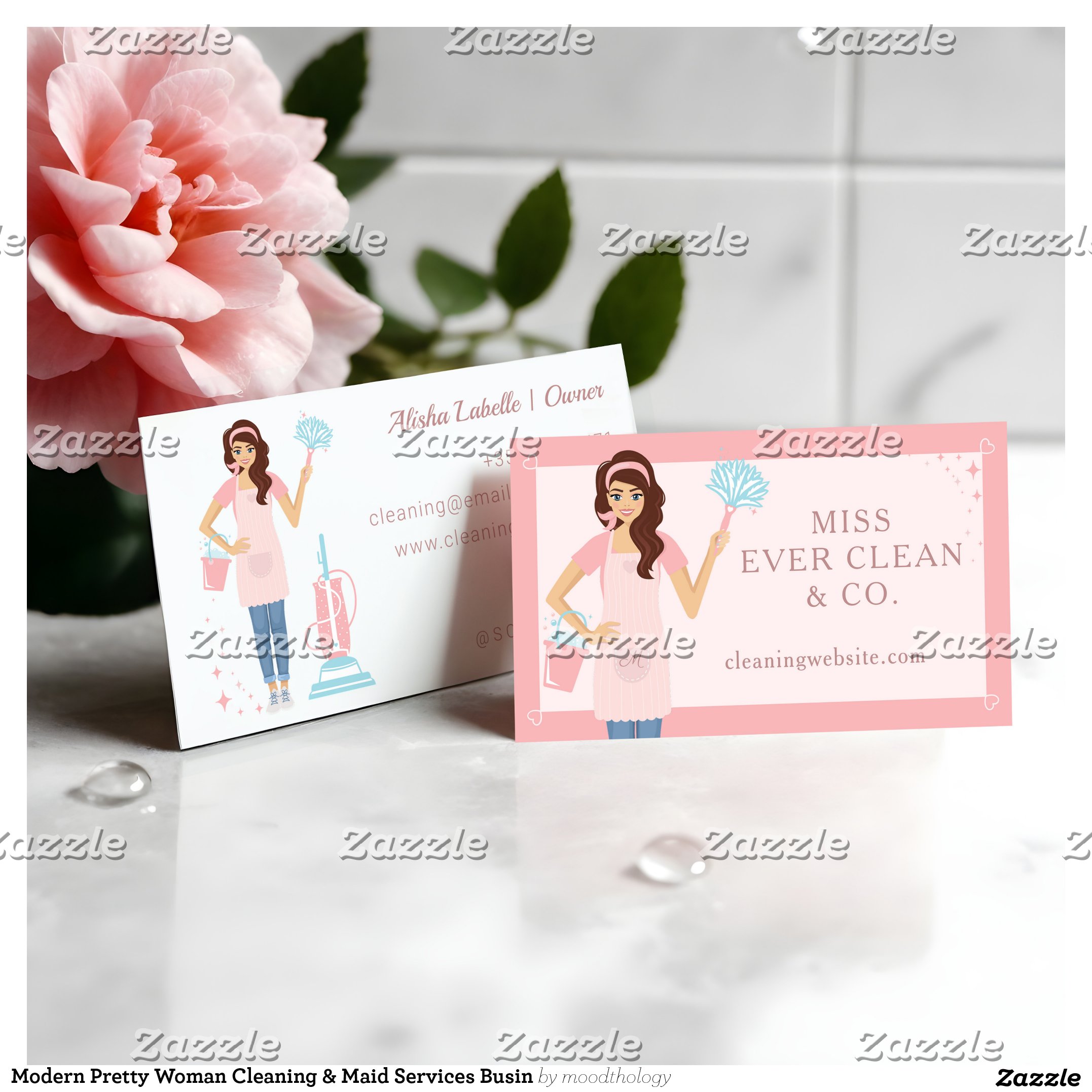 Modern Pretty Woman Cleaning & Maid Services Busin Business Card