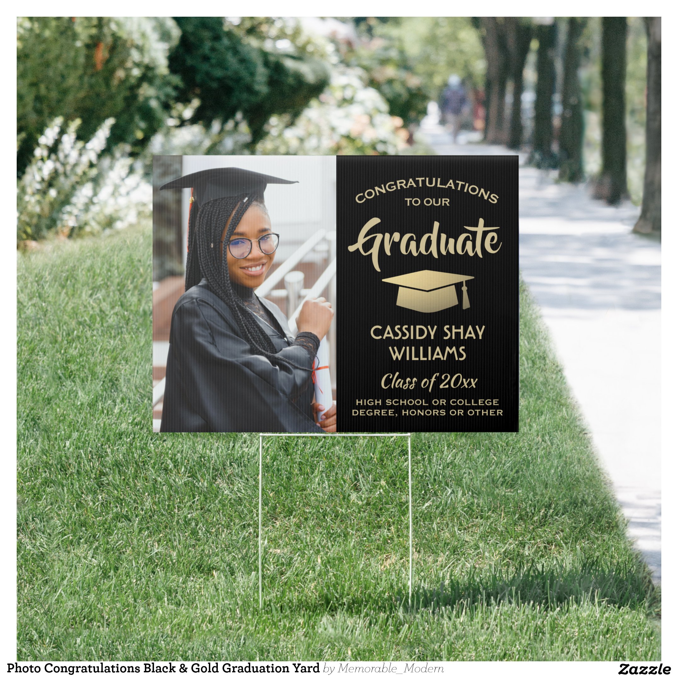 4 Photo Graduation Collage Modern Black and Gold Announcement
