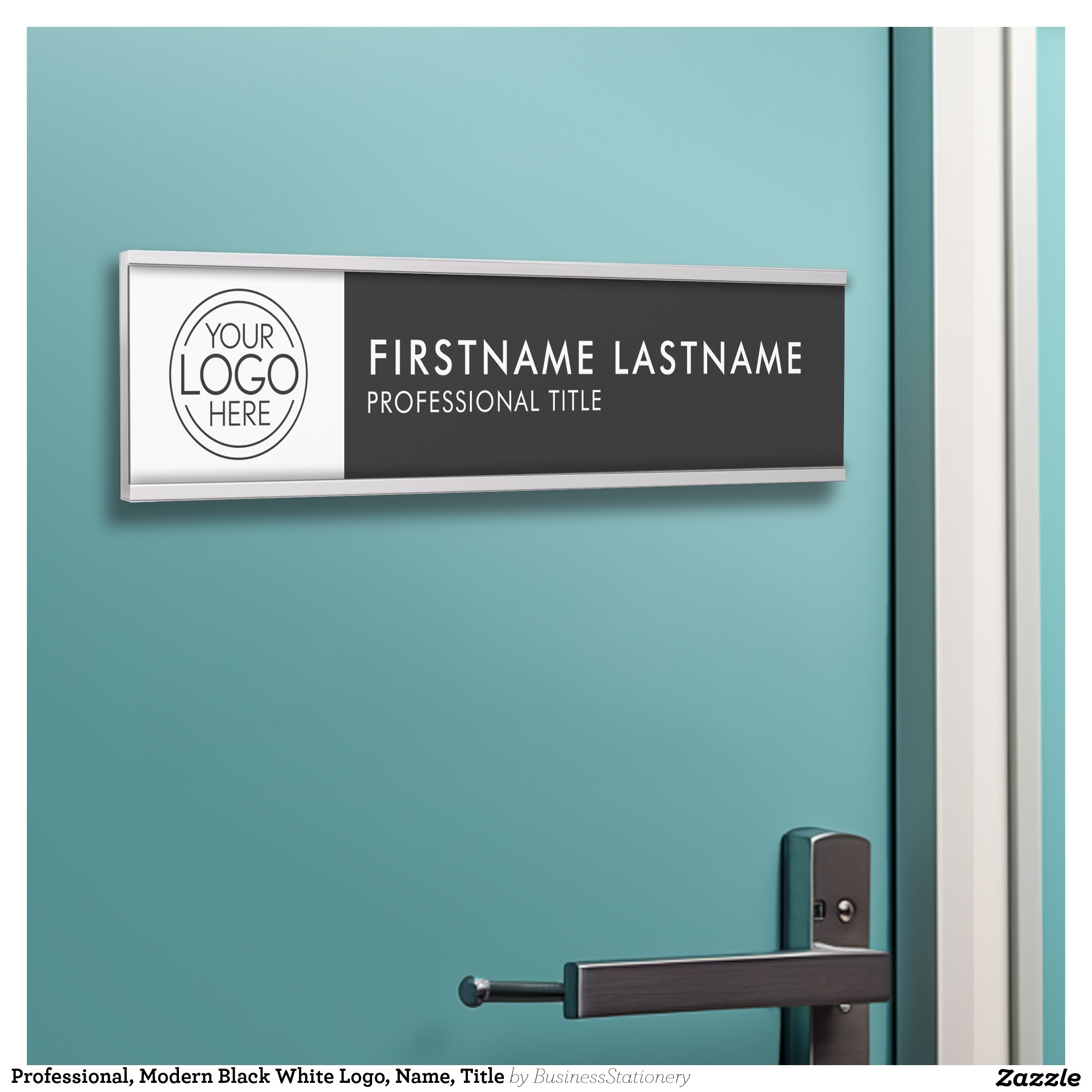 Professional, Modern Black White Logo, Name, Title Door Sign
