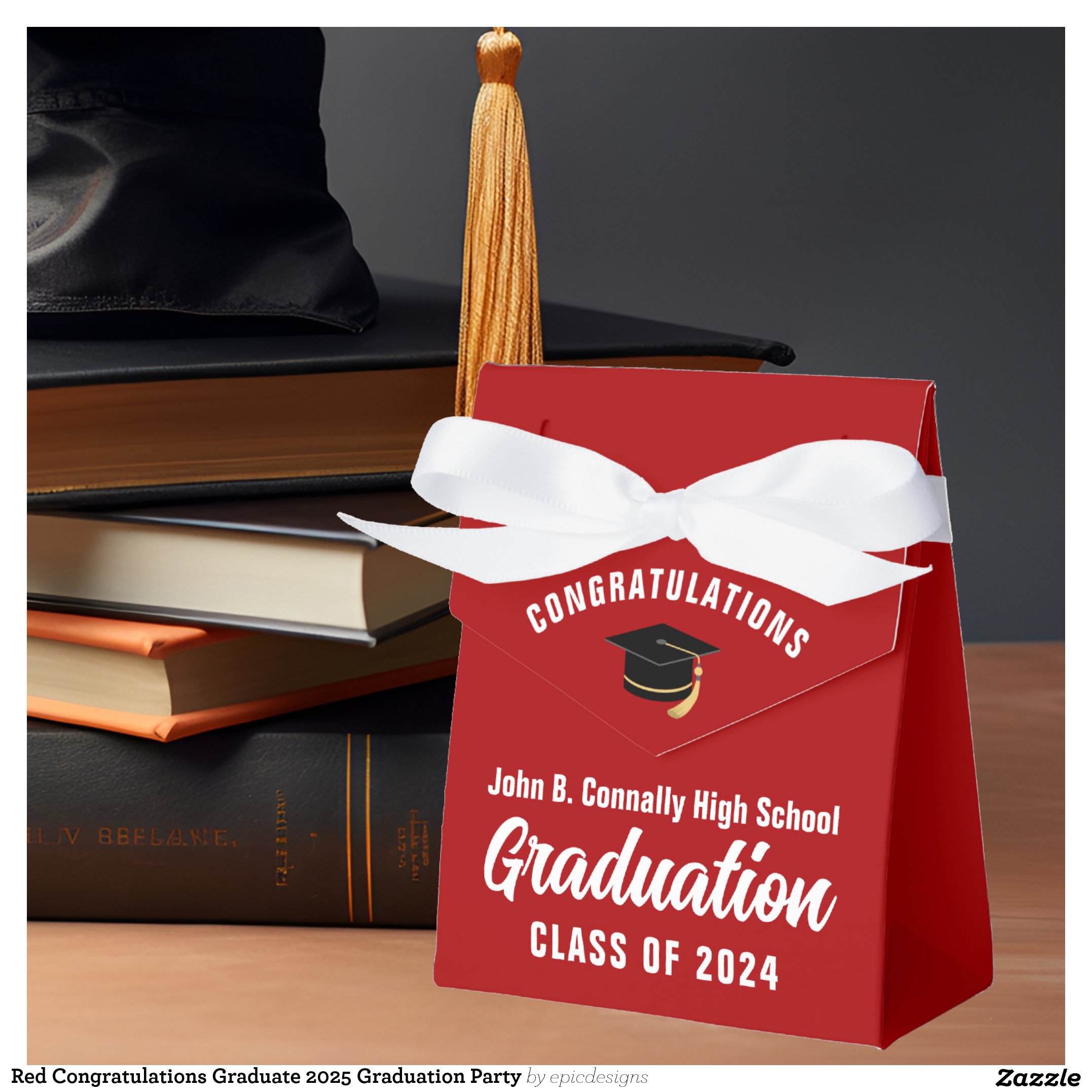 Red Congratulations Graduate 2025 Graduation Party Favor Boxes