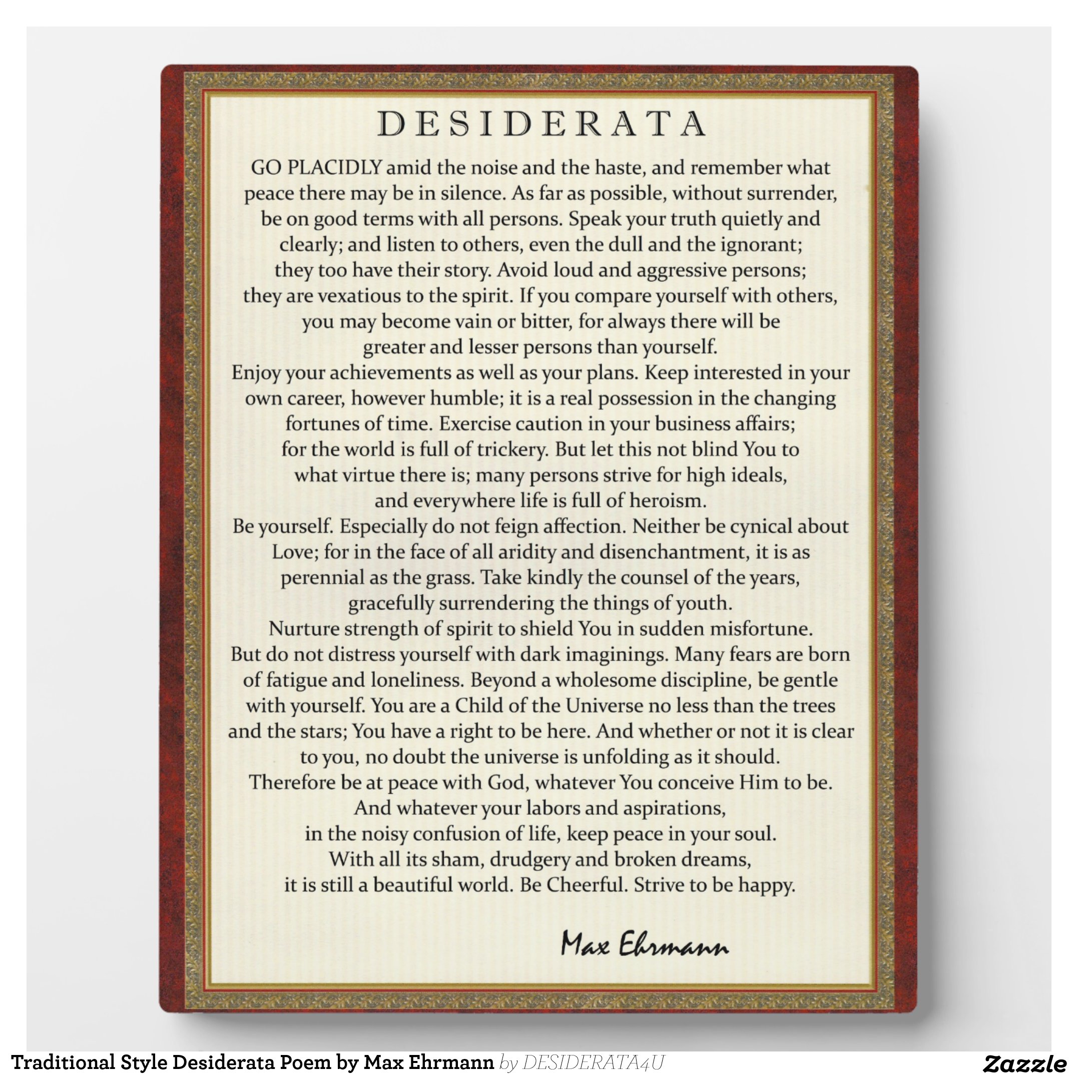 Traditional Style Desiderata Poem by Max Ehrmann Plaque